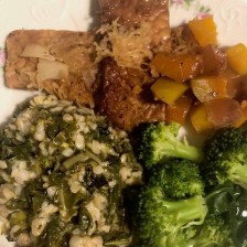 Este prato também pode ser acompanhado com massa integral, millet ou até quinoa. Como sobrou bastante tempeh, amanhã, ou como tal como está e renovo o cereal para ter algo mais fresco na refeição, ou então faço burguers de tempeh que são divinais (feitos no forno ou na frigideira) mais um cereal feito de novo e verdes e a refeição está feita.